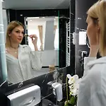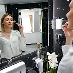 Værelserne er udstyret med et mini køleskabsbar, en personlig værdiboks og et fladskærms TV med satellitkanaler samt separat toilet og en bruser på badeværelset.